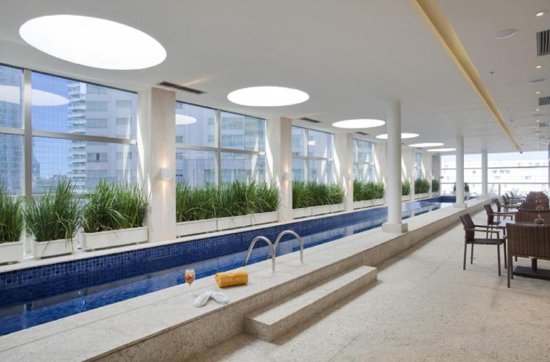 Innen- und Außenpools eignen sich hervorragend für regelmäßiges Aquatraining und aktive Erholung. Liegestühle und Sonnenschirme garantieren erholsame Stunden. Wohlige Entspannung verspricht der Whirlpool im Badebereich. Abwechslung bieten verschiedene Angebote, darunter ein Fitnessstudio, Aerobic, ein Spa, eine Sauna und ein Dampfbad.